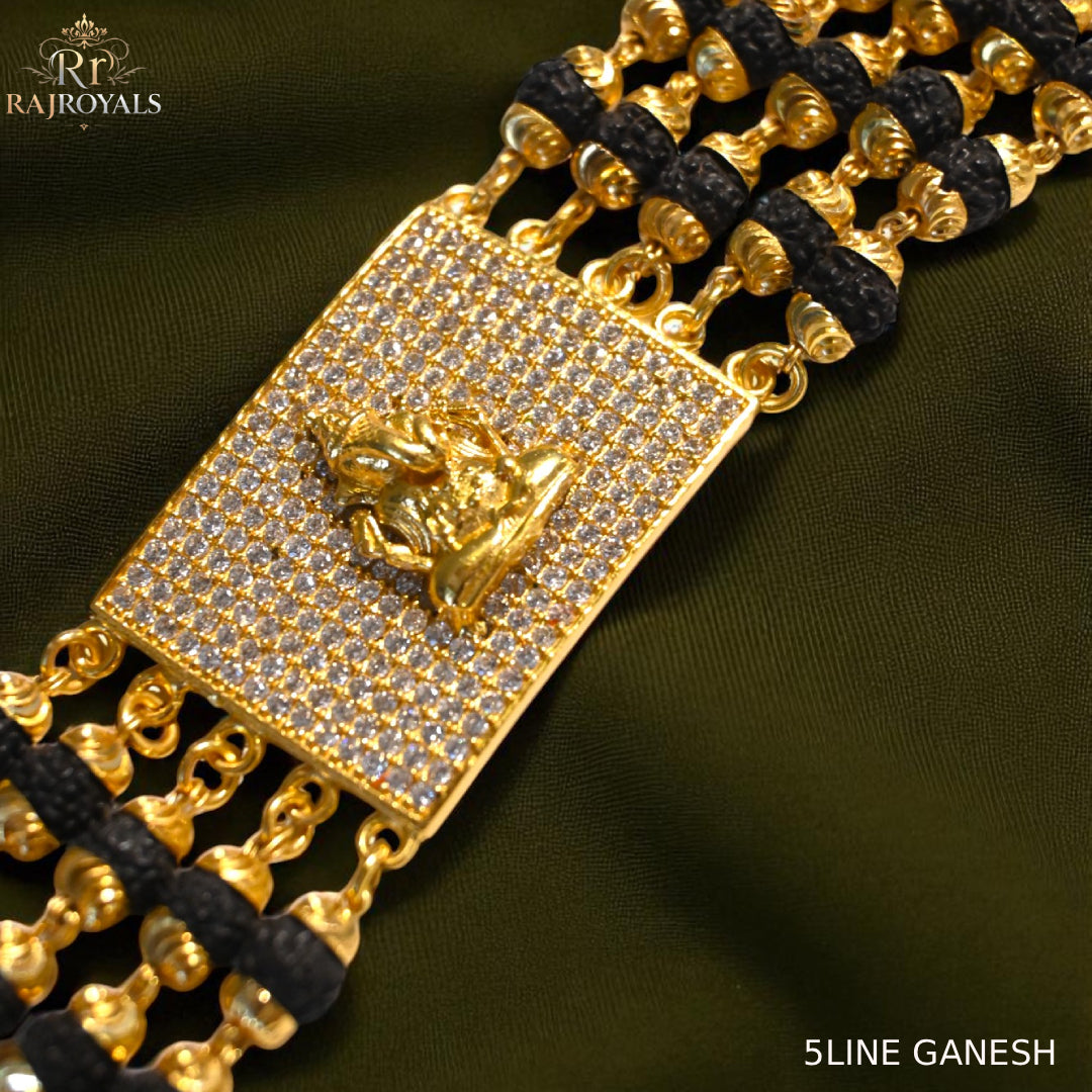 Ganesh with Diamond Awesome Gold Plated Rudraksha Bracelet for Men 5 LINE Gnesh